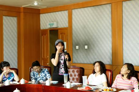 张汉梅分享了爱的实践,她特别喜欢小动物、可怜小动物,经常收养流浪狗,最多的时候曾经有过九条狗。有一次遛狗的时候,她的狗和邻居的狗打起架来,邻居的狗吃了亏,邻居气不过非要打她的狗,她说,你们非要打就打我吧,我长得壮实,结果邻居就真的用扫把打了她,她也心甘情愿的挨了打,没有还手。她说:“爱需要宽容。”
